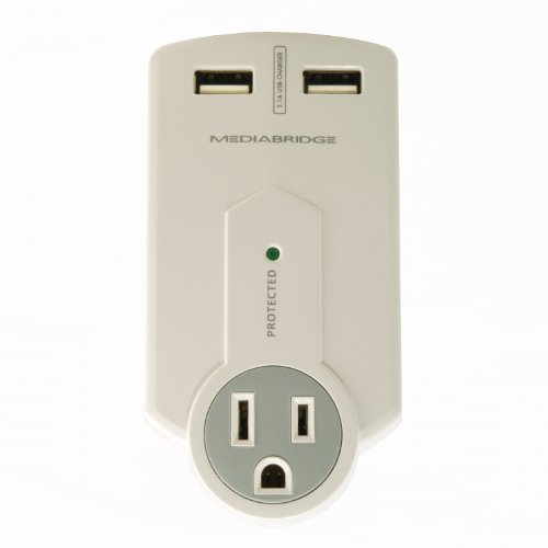 | 1 of 1 people found the following review helpful By Amazon Verified Purchase This review is from: Mediabridge Portable Surge Protector with High Output USB Charger (Electronics) Even thought I use it as a stationary surge protector this thing works great. USB ports are a great added benefit especially since you don't have to buy the Apple AC to USB port charger to charge any of your iOS devices, which may I add, costs almost the same price. Once again Mediabridge has another great device at a good price point. I'll definitely buy another! Amazon Verified Purchase This review is from: Mediabridge Portable Surge Protector with High Output USB Charger (Electronics) Mediabridge loves to send emails asking us to review products so, out of guilt, I'll do so :)I like this surge protector, especially the 2A USB charger. I had a Belkin before this, but I believe the output was only .5A per port, which made charging things like my Kindle Fire a marathon rather than a sprint. With this device, my newer devices charge much more quickly. The additional AC outlets are also nice, though they won't necessarily accommodate the thicker AC adapters, since they are to the sides and only have a small amount of clearance with the wall. The reason I dinged the adapter by one star is the lack of ability to re-orient the device. Because the three-pronged adapter is only oriented in one direction, the USB ports must always remain at the top. The problem with this is that as you plug in more devices and USB cables, the adapter tends to get a bit top-heavy and risks falling out of the wall socket. The advantage to the Belkin was that it... Read more Amazon Verified Purchase This review is from: Mediabridge Portable Surge Protector with High Output USB Charger (Electronics) It's compact and well designed. USB ports appear to output 1 AMP per port. Like all Mediabridge products, it meets the specifications provided for a fair price. Excellent manufacturer. |