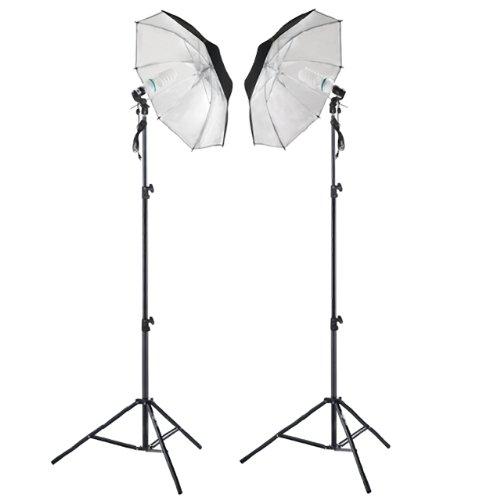 This is our ultimate value umbrella set! This Shutter Starz kit offers exceptional quality at a price you can afford. Qualities such as the thick nylon durable construction of our umbrellas and the extra large footprint offered by our light stands, plus the incredible convenience and portability of this package are standard on our lighting kits.. The beauty about this set is the ease and simplicity of use. It is not only one of our most cost effective flash set-ups, the quality is unmatched in the industry. With 2 65w Continuous Light bulbs, you will be taking professional photos in minutes. This umbrella set will capture soft light and spread it over a large area, giving you maximum control over staging. Quick release levers help to make set up and tear down take just minutes. Includes (2) Black/Silver Umbrellas (2) Light brackets with Umbrella Holders (2) Premium Grade Bulbs (65 watts each) (2) Premium Light Stands (1) Premium Carry Case Bag Dimensions Stands extend from 35" to 84" Umbrellas are 33" in diameter 65 watts bulbs (X2) Total weight 15 lbs.
