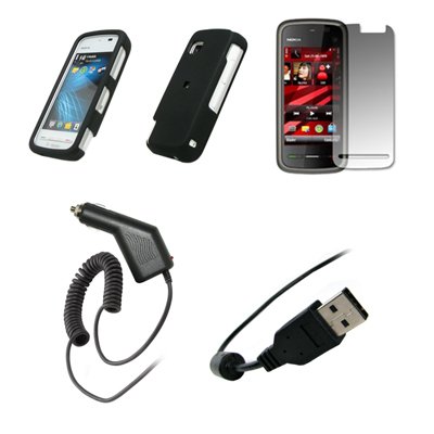 Nokia Nuron 5230 - Black Rubberized Snap-On Cover Hard Case Cell Phone Protector + Crystal Clear Screen Protector + Rapid Car Charger + USB Data Charge Sync Cable for Nokia Nuron 5230 Reviews